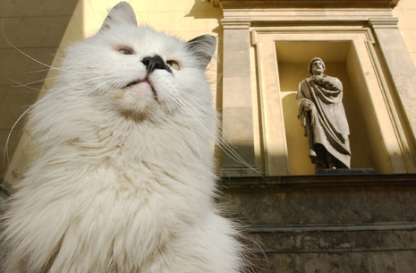 The cats of the Hermitage deserve a special mention as they have been guarding The State Museum in St. Petersburg, Russia from rats since 1745. These kitties are definitely one of my favorite cats in “art” even though their official role is in the history of the museum. They are quite famous, and while their roles as rat catchers has slightly changed over the years they have a following all their own. They are taken care of by volunteers and provided with food, attention, cat doors to and from the museum and vaccinations. Behind the scenes video of the Hermitage cats can be seen here.