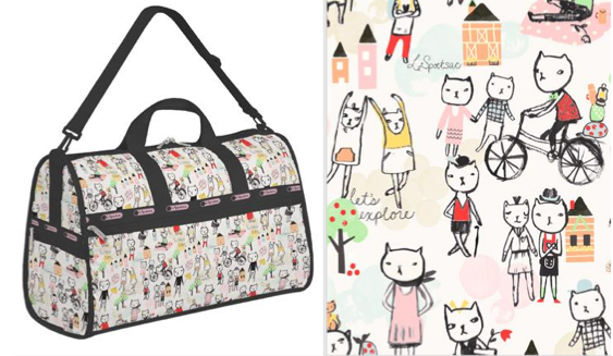 If you love the idea of proper little cat-like people in hats, dresses riding bikes about a quaint little town then you should pick this up. Le Sport Sac also offers multiple styles in this adorable, chic print.